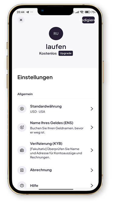 Verwalte dein digitales Wallet flexibel in Kryptowährungen, Fiat (mit eigener IBAN) oder beidem – du entscheidest, was für dich passt.